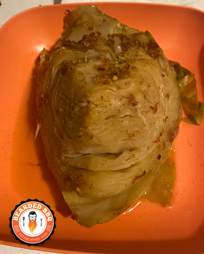 With about one hour left of the cook for the meat or main dish that you have on the smoker, add the four, wrapped cabbage wedges to the smoker. Leave the foil closed and cook until desired texture of cabbage; roughly 1 to 1.5 hours at 225 degrees. Once the wedges are at the desired texture, remove from heat and let cool for 10 minutes, remove from packet and serve.